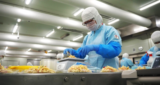 とても真面目に仕事に取り組まれています。入職して間もない頃はコミュニケーションもなかなかうまくいかず、作業自体も簡単なトッピングを担当するのが精一杯な感じでした。でも、耳が聞こえない分、「目」で周りの作業をよく見て勉強している様子が伝わってきました。例えば、高村さんがよく作業を担当するラインでは、片手ずつ違う原料をトッピング(右手でネギ、左手でたまごそぼろ)する商品があり、最初はラインスピードについていけませんでした。でも、他の方がやっている作業を見て勉強したり、自分がトッピングしやすいように作業台の位置を調整したりして工夫をして、今では他の方と同じようにトッピングできています。