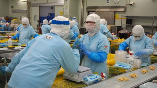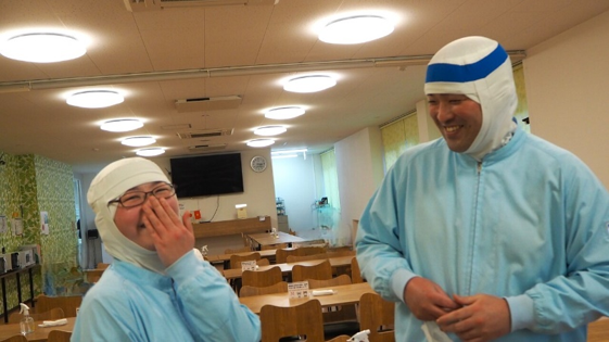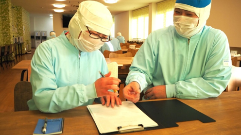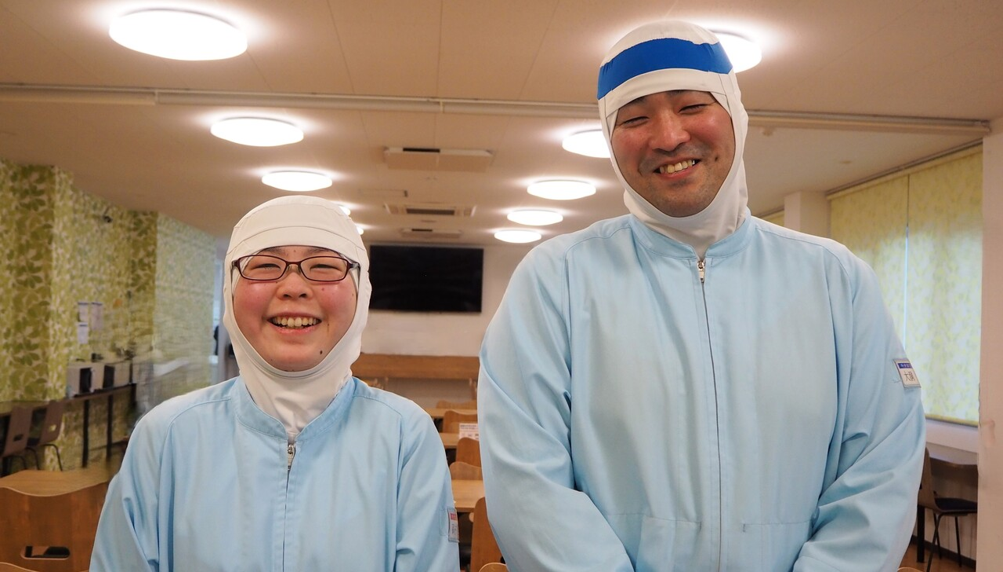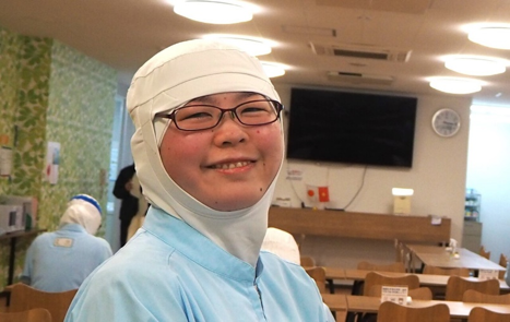 「落ち着いて行動すること」「食品に髪が入らないように注意しながら作業すること」「助け合い」「コミュニケーション」を大切にしています。