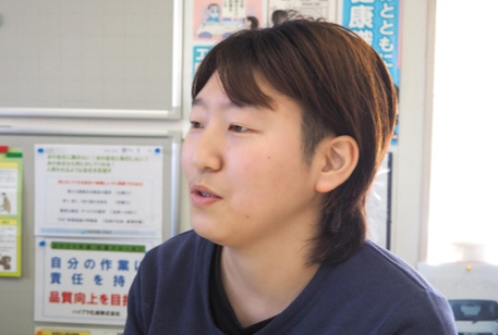 照井課長)弊社ではベトナムから来た女性4人が外国人技能実習生として働いてくれているのですが、日本語の習得には彼女たちも苦労していて、会社としても彼女たちとのコミュニケーションには苦労していました。そうした中で若菜さんはベトナムの子たちとも積極的にコミュニケーションを取ってくれています。現在では彼女たちも若菜さんを頼りにして仕事の悩みはもちろん女性特有の悩みなども相談していて、会社への要望も若菜さんを通して教えてもらえるので、以前よりも細かく対応ができるようになりました。